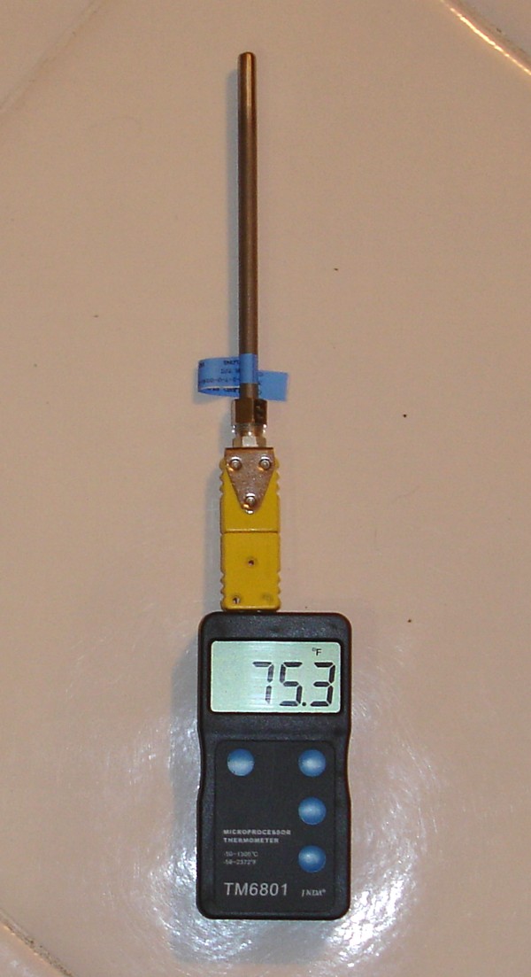 Pyrometer and a 5/16 inch diameter MGO type K temperature probe Thermocouple that can be used for measuring the temperature of reduction atmospheres up to 1300 °C or 2350°F.